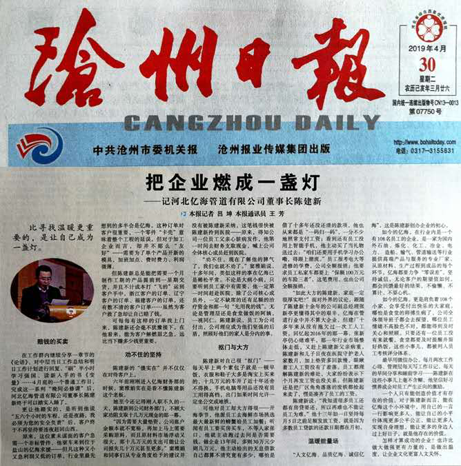 近日,滄州日報對我公司進(jìn)行了紀(jì)實(shí)采訪,道出了億海所追求的價值觀------用個人言行,影響更多的人,讓小平臺體現(xiàn)更多的公平與公正,讓更多人實(shí)現(xiàn)自身的理想,讓更多身邊的人走向更美好的明天。