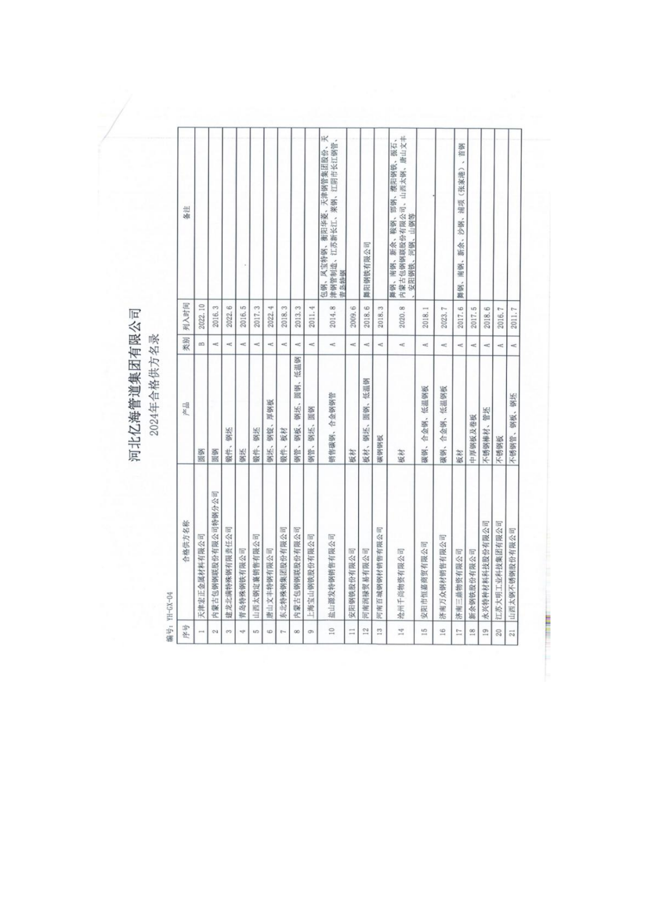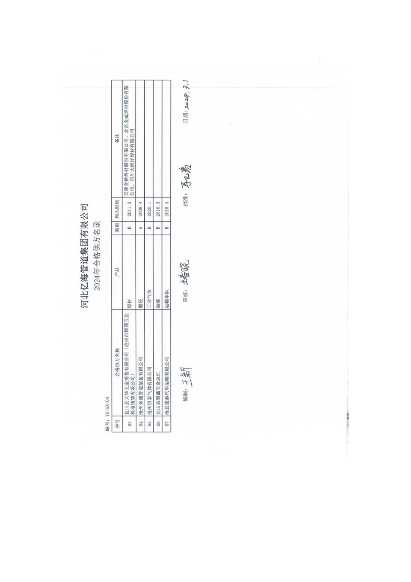 合格供方名錄